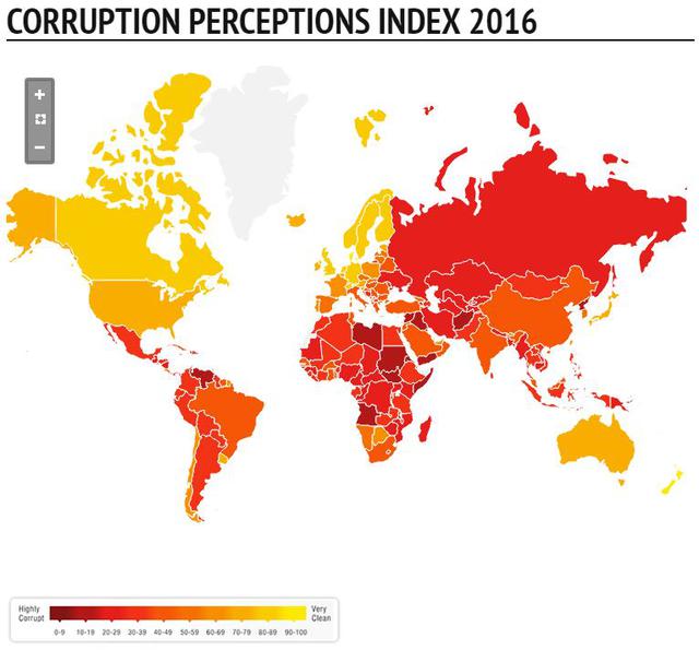 Неправительственная международная организация Transparency International, которая ставит целью борьбу с коррупцией, обнародовала в среду, 25 января, свой ежегодный Индекс восприятия коррупции CPI. Эксперты организации формируют его на основе независимых опросов, в которых принимают участие международные финансовые и правозащитные эксперты, в том числе от Всемирного банка, Freedom House, World Economic Forum и др. Индекс представляет собой оценку от 0 (очень высокий уровень коррупции) до 100 (очень низкий уровень коррупции). В индексе за 2016 Украина получила 29 баллов из 100 возможных, на два балла улучшив свои прошлогодние показатели, как отмечают составители, благодаря продвижению антикоррупционных реформ, пишет dw.com.