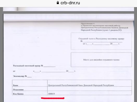 Об этом он сообщил на своей странице в Facebook. "Я легко нашел доказательства того, что Национальный банк Украины таки присвоил расчетный код Центральному резервному банку ДНР. Код этот - 400019. Официально указан в инструкциях банка ДНР для расчетов", - отмечает журналист, при этом приводя ссылку на "постановление" боевиков, где указывается код МФО "ЦРБ ДНР".