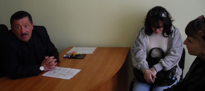 На фото Марийчук Н.В., правозащитник Целовальченко Н.Е. на аудиенции у заместителя прокурора Луганской области, подписанта сотен ответов Рева А.А.. Снимал Канцара В.Д. Подробней здесь