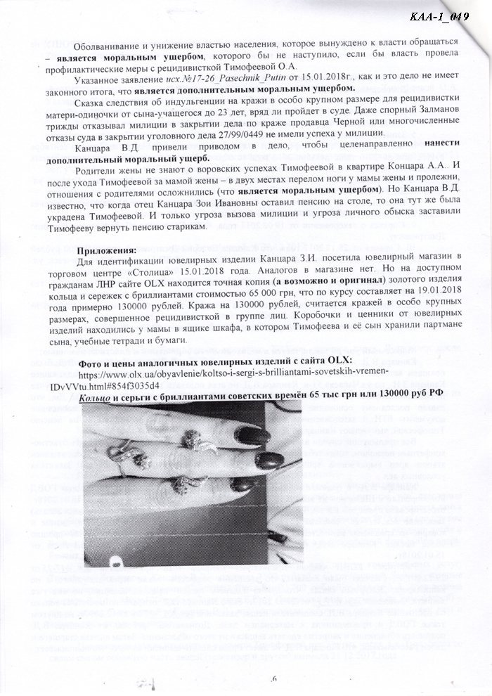 и угроза личного обыска заставили Тимофееву вернуть пенсию старикам. Приложения: Для идентификации ювелирных