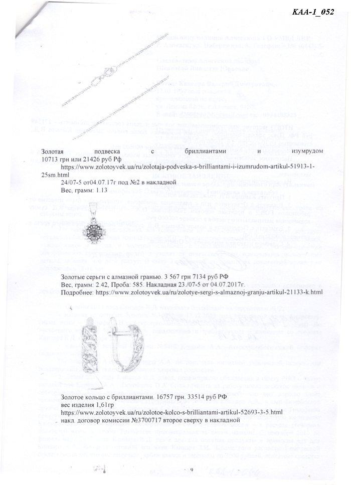 подается часть ювелирных изделий, похищенных Тимофеевой и её сыном. После