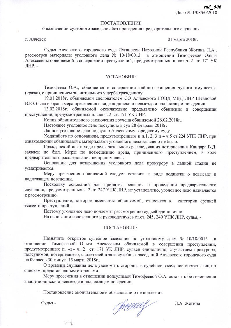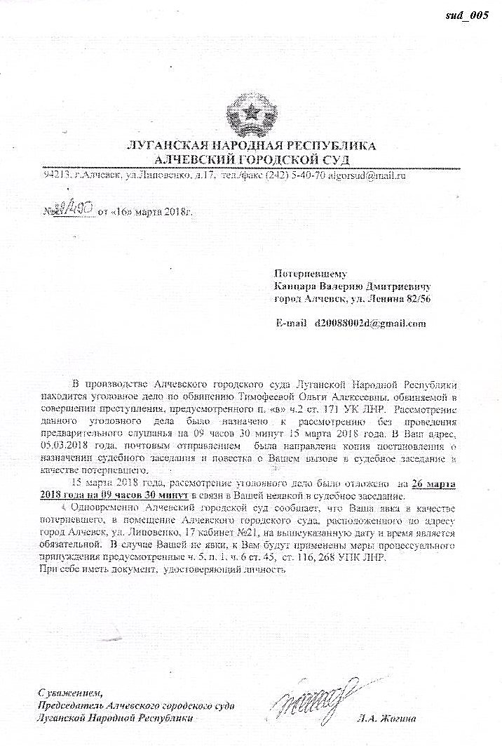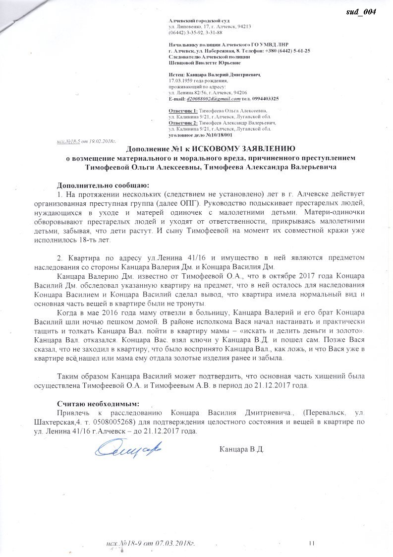 Калинина 9/21, г.Алчевск, Луганской обл. Ответчик 2: Тимофеев