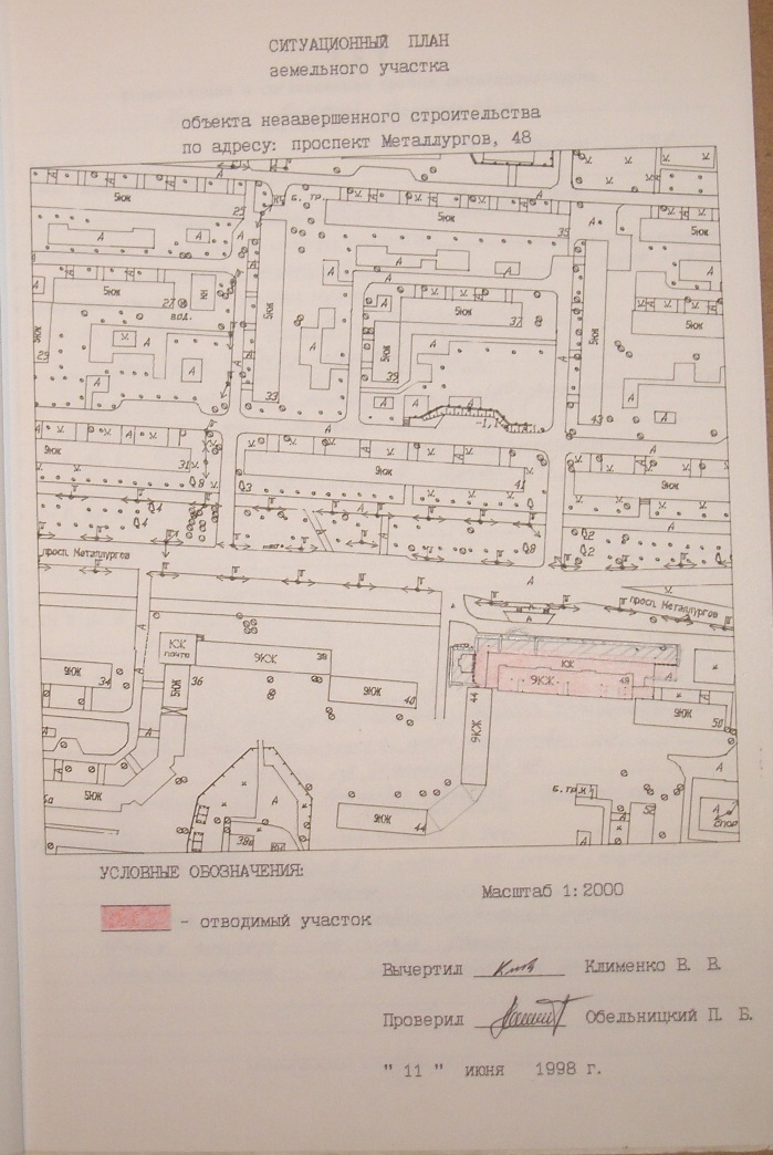 п.48-49. Паспорт от 1998 года земельного участка по пр-ту Металлургов,48, который Канцара В.Д. оплатил.