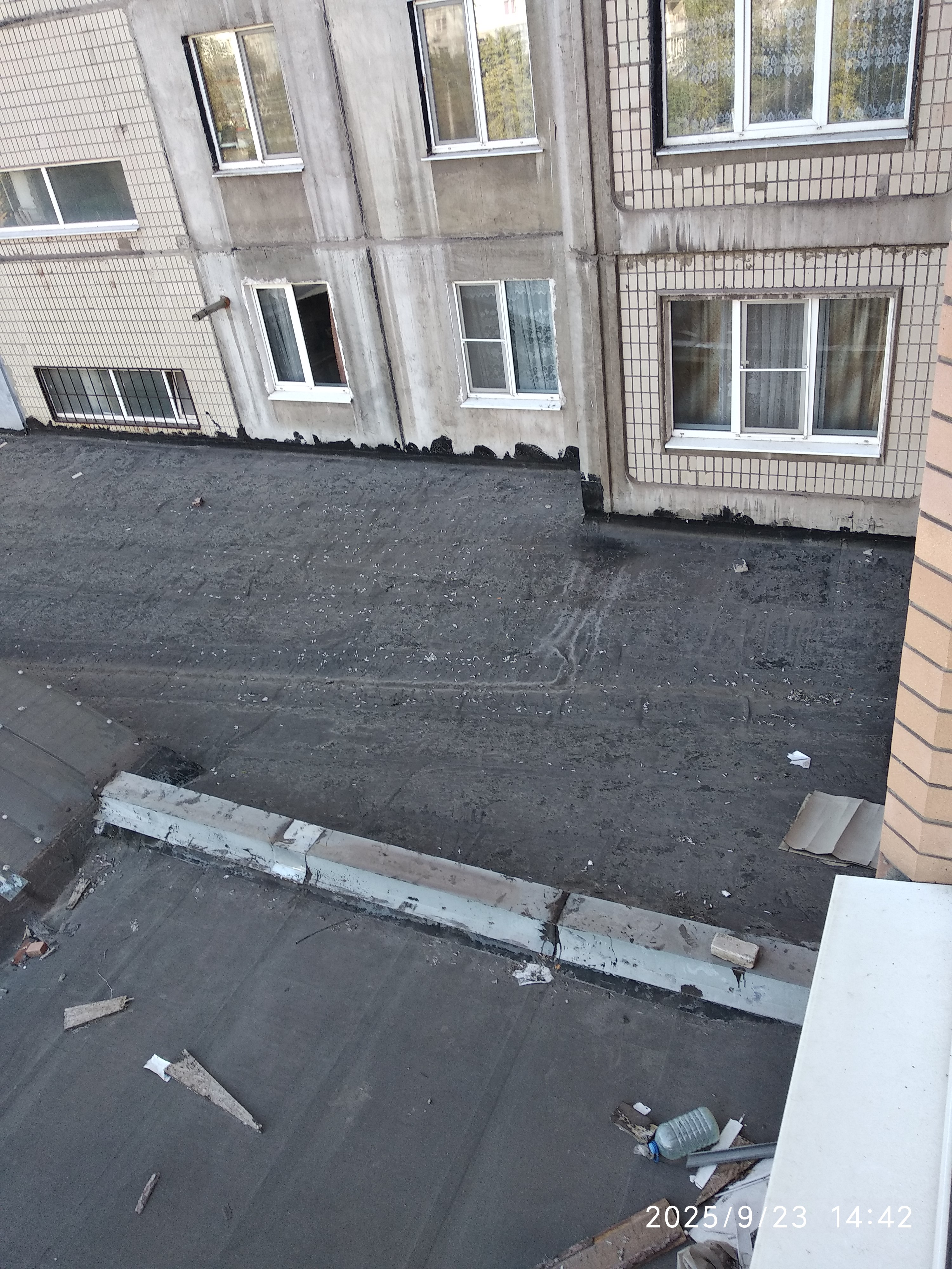 Фото 130. 10.11.2024г. Канцара В.Д. убрал крышу и уже на следующий день крыша завалена окурками, которые забивают дождевую канализацию. Управдом Александр быкует (аудио от 11.11.2024г.).