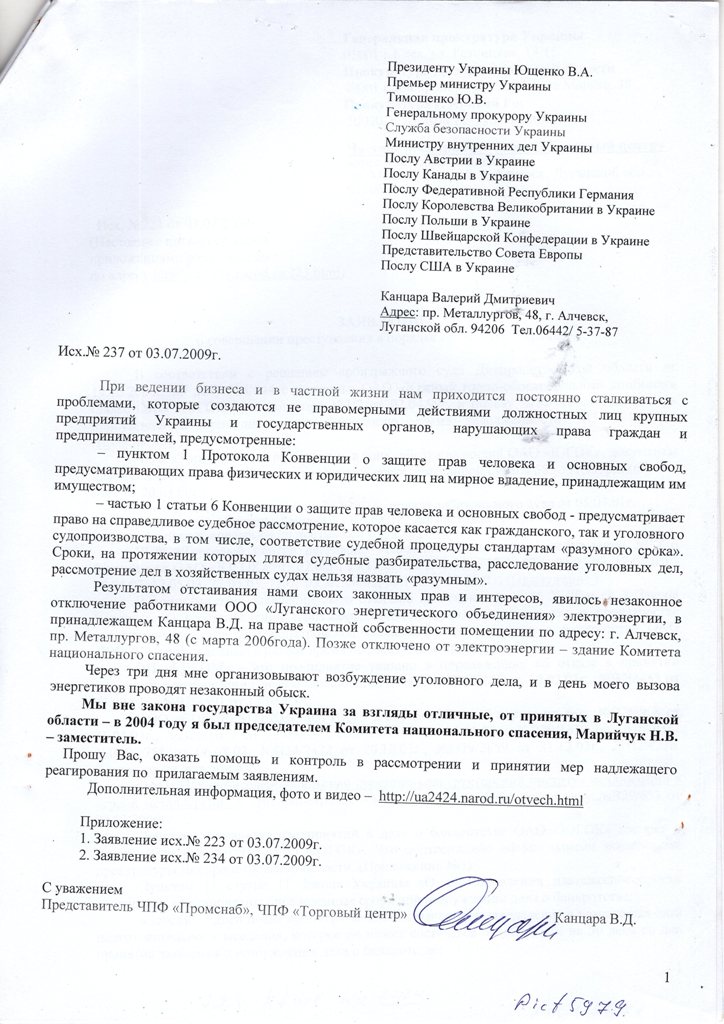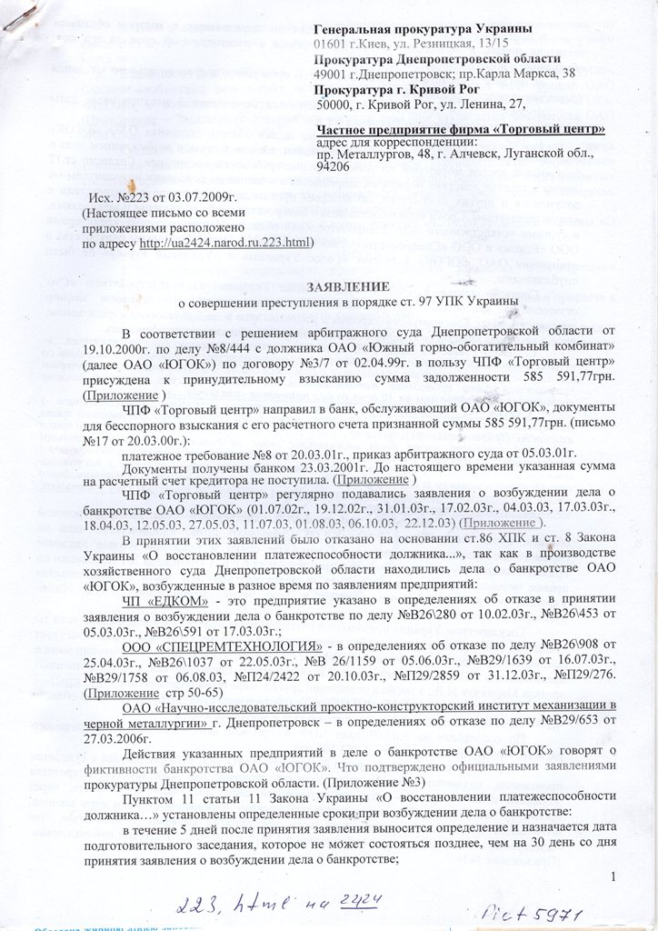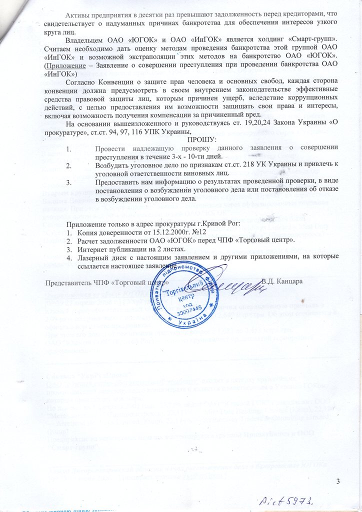 поднималось по заявлению ЧП “Торговый центр” (приблизительно через год оно