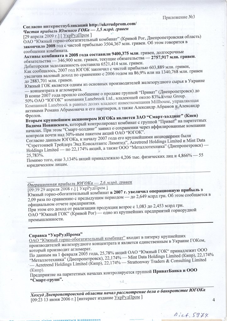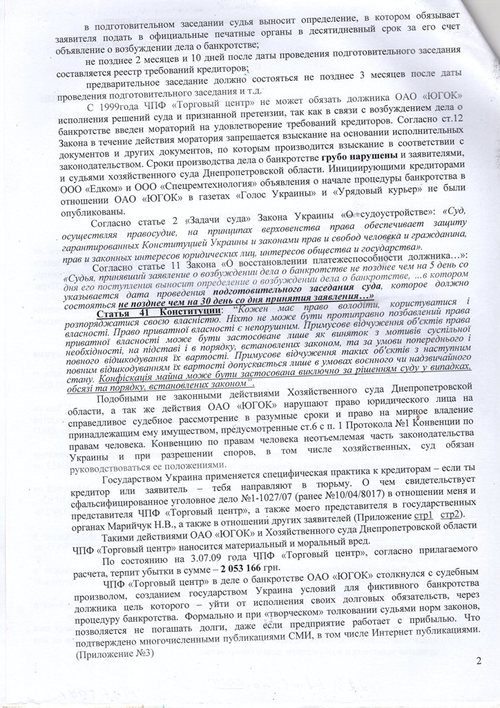 банкротстве ОАО “Южный горно-обогатительный комбинат” (ЮГОК, Кривой Рог